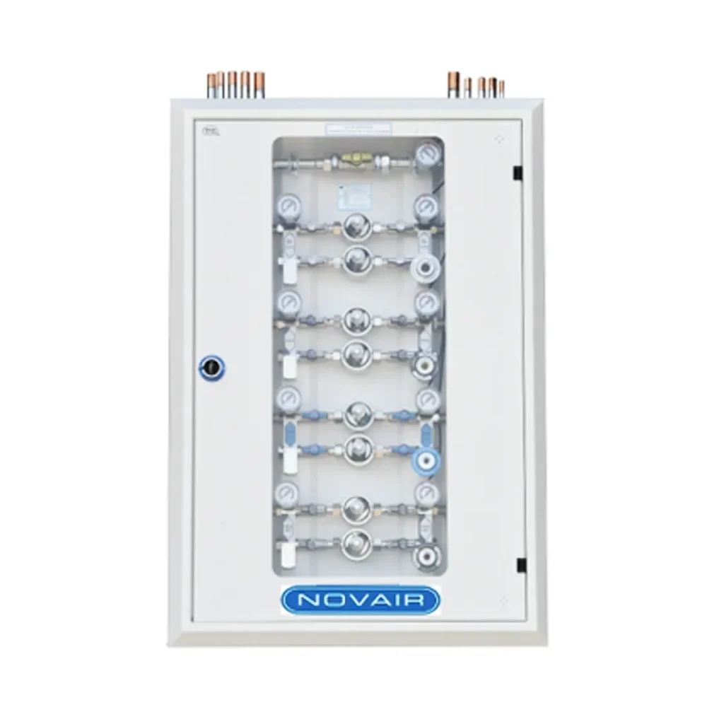 Designed for secondary distribution of medical gases, it ensures continuity of supply while providing safety and flexibility.