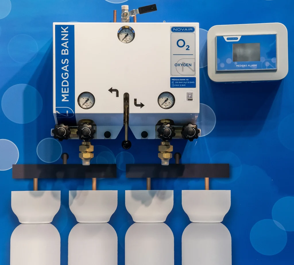 Supplied with cylinder banks, hoses, valves, and accessories, the system is ready to be integrated into any hospital network.