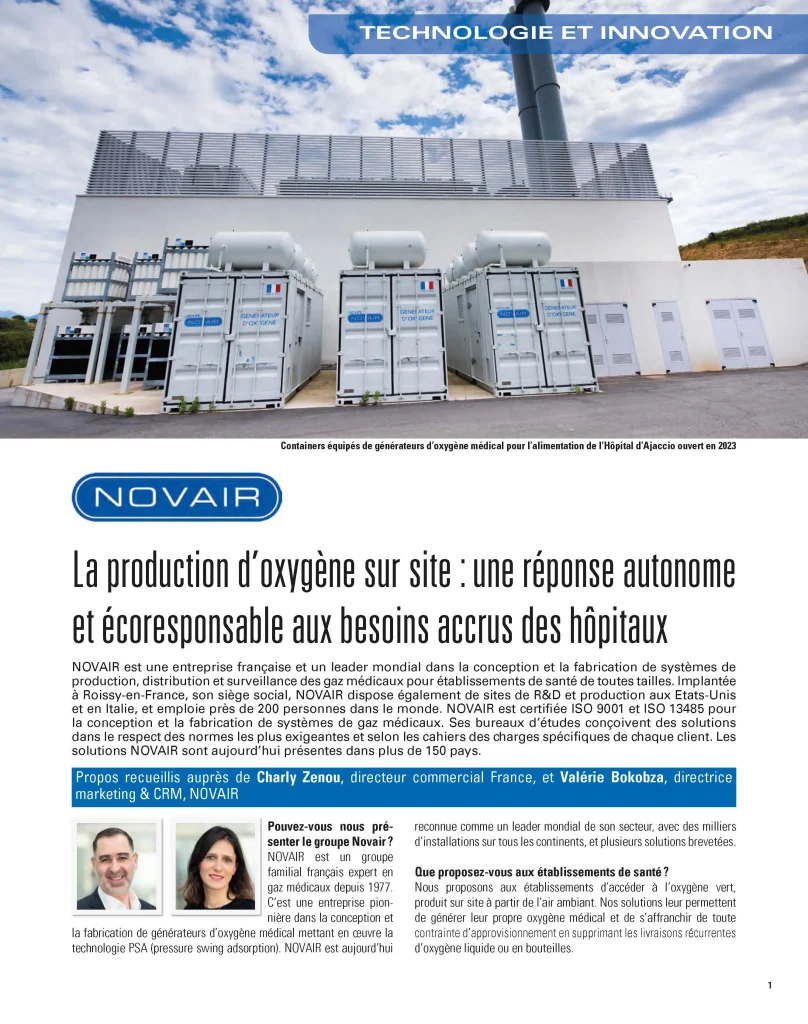 Le magazine Architecture Hospitalière publie un article sur la production d’oxygène médical sur site NOVAIR pour l’approvisionnement autonome et écoresponsable des établissements de santé.