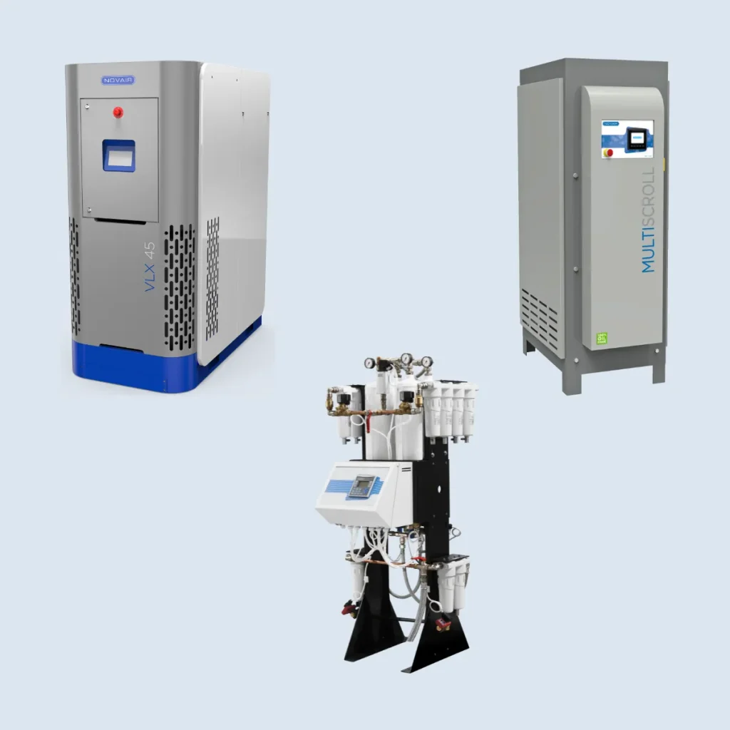 NOVAIR propose une gamme complète de systèmes d’air médical intégrant les dernières innovations en compression, filtration et distribution. Modulaires et évolutifs, nos solutions s’adaptent à la taille et aux besoins de chaque établissement, tout en garantissant performance, fiabilité et conformité.